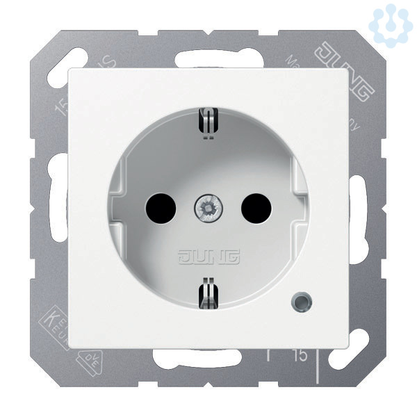 SCHUKO®-Steckdose, 16 A 250 V ~, mit Funktionsanzeige, SAFETY+, Thermoplast, Serie AS/A, alpinweiß