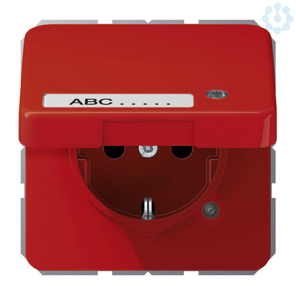 SCHUKO®-Steckdose, 16 A 250 V ~, mit Funktionsanzeige, mit Schriftfeld, SAFETY+, Klappdeckel, Thermoplast, Serie CD, rot