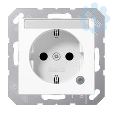 SCHUKO®-Steckdose, 16 A 250 V ~, mit Funktionsanzeige, mit Schriftfeld, SAFETY+, Thermoplast, Serie AS/A, alpinweiß