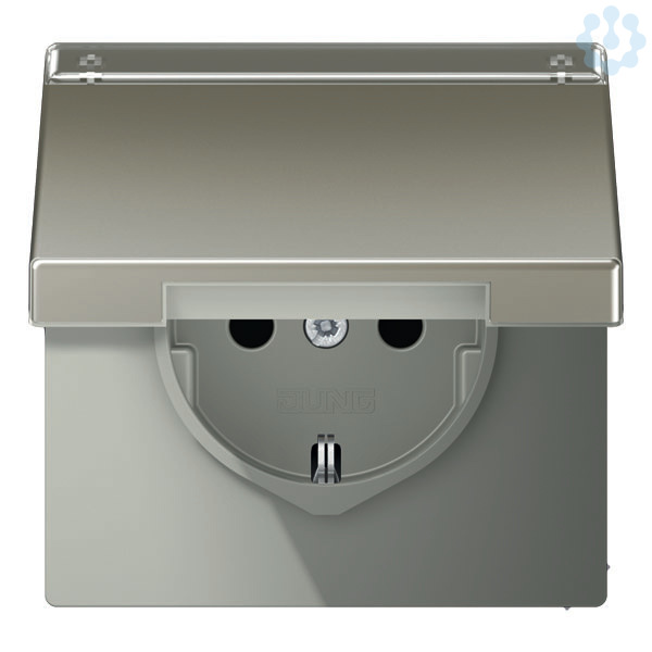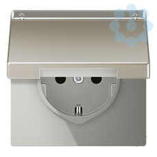SCHUKO®-Steckdose, 16 A 250 V ~, mit Schriftfeld, SAFETY+, Klappdeckel, Serie LS, Edelstahl