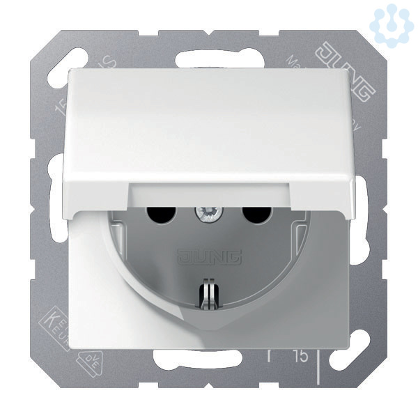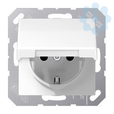 SCHUKO®-Steckdose, 16 A 250 V ~, ohne Krallen, Klappdeckel, Thermoplast, Serie AS, alpinweiß