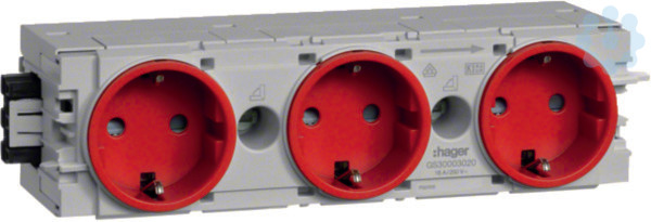 SCHUKO Dreifachsteckdose mit Wago Steck-/Klemmtechnik C-Profil in verkehrsrot