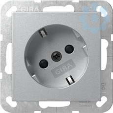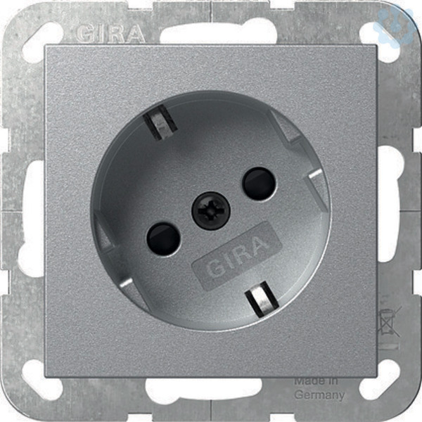 SCHUKO-Steckdose 16 A 250 V~ mit um 30° gedrehtem Einsatz und erhöhtem Berührungsschutz (Safety Plus), ohne Befestigungskrallen Farbe Alu System 55