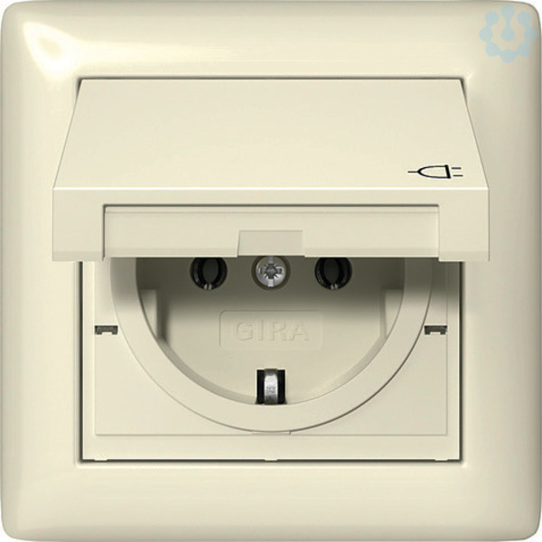 - Set aus SCHUKO-Steckdose mit Klappdeckel, Dichtungsset IP44 und Abdeckrahmen Gira Standard 55.