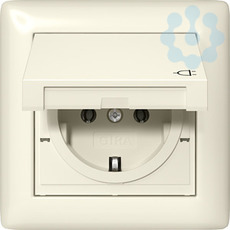 SCHUKO-Steckdose 16 A 250 V~ mit Klappdeckel, komplett mit Dichtungsset IP44 und Abdeckrahmen Cremeweiß glänzend Standard 55