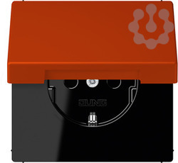 SCHUKO Steckdose, 16 A 250 V ~, ohne Krallen, integrierter erhöhter Berührungsschutz, SAFETY+, Klappdeckel, Serie LS, rouge vermillon 59