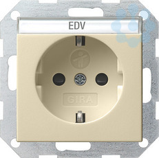 SCHUKO-Steckdose 16 A 250 V~ mit Beschriftungsfeld, integriertem erhöhten Berührungsschutz (Shutter) und Symbol Schraubklemmen Cremeweiß glänzend Hinweise : Erhöhter Berührungsschutz gemäß DIN VDE 0620-1.