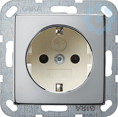 SCHUKO-Steckdose 16 A 250 V~ mit integriertem erhöhten Berührungsschutz (Shutter) und Symbol SchraubklemmenChrom CremeweißHinweise : Erhöhter Berührungsschutz gemäß DIN VDE 0620-1.