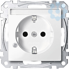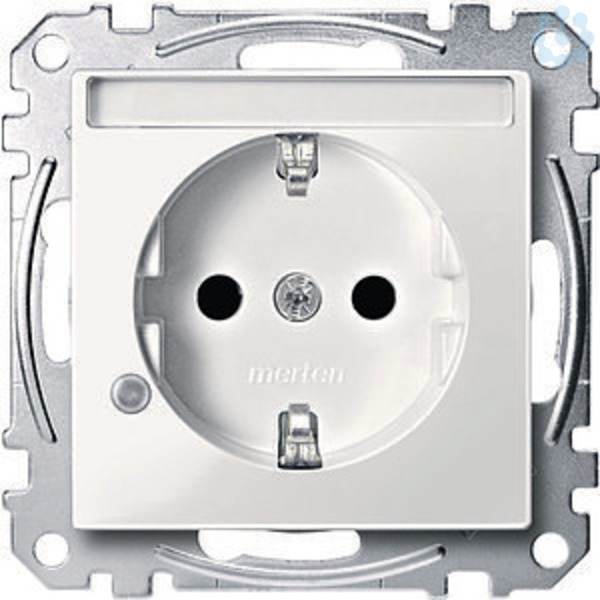 SCHUKO-Steckdose mit Kontrolllicht und Schriftfeld, Berührungsschutz, Steckklemmen, polarweiß glänzend, System M