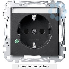 SCHUKO-Steckdose mit Überspannungschutz und Schriftfeld, Berührungsschutz, Steckklemmen, anthrazit, System M