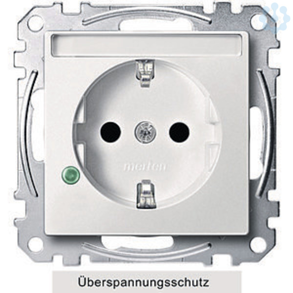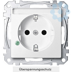 SCHUKO-Steckdose mit Überspannungschutz und Schriftfeld, Berührungsschutz, Steckklemmen, polarweiß, System M