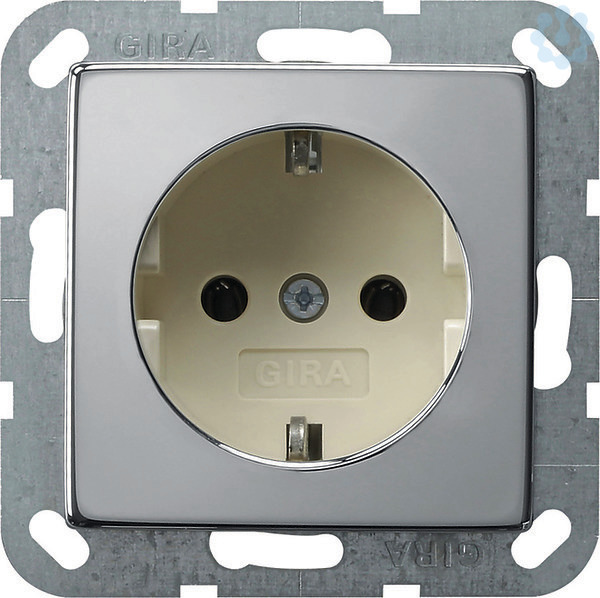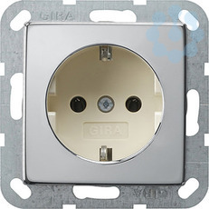 SCHUKO-Steckdose 16 A 250 V~ ohne BefestigungskrallenChrom CremeweißHinweise : Mit erhöhtem Anpressdruck des Erdungsbügels geprüft nach T.N.O.
