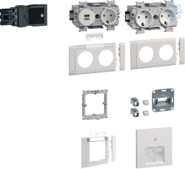 SET 1 Arbeitsplatz mit 3 Std+USB-Charger 15W 2xRJ45 Cat.6A Frontrastend vw