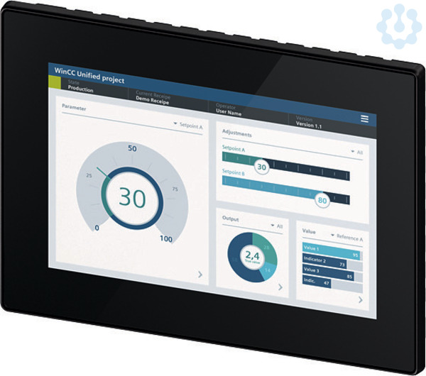 SIMATIC HMI MTP1000, Unified Comfort Panel, Neutral, Touchbedienung, 10,1 Widescreen-TFT-Display, 16 MIO Farben, PROFINET Schnittstelle, projektierbar ab WinCC Unified Comfort V16, enthält Open Source SW, die unentgeltlich überlassen wird siehe beiliegende Blu-Ray SIMATIC HMI Unified Comfort Panels ermöglichen innovative Bedienkonzepte auf Basis der neuen Visualisierungssoftware SIMATIC WinCC Unified. Alle Geräte, in den Größen von 7 bis 22 Zoll bieten die gleiche Anzahl an Schnittstellen sowie maximalen Bedienkomfort dank moderner Multitouch-Technologie. Die neue Hardware bietet zudem deutlich mehr Leistung für die Umsetzung der Visualisierung. Die Systemlimits wurden mindestens verdoppelt, teilweise sogar verdreifacht. Das ermöglicht die Umsetzung von deutlich größeren Applikationen als bisher auf einem Panel-System. Die Funktionalität der Geräte kann durch die integrierte Edge-Funktionalität nach Bedarf einfach erweitert werden. Um die IT-Sicherheit der Geräte zu gewährleisten, setzt Siemens auf ein proprietäres Betriebssystem und ermöglicht dem Anwender, nicht benötigte Funktionen oder Schnittstellen zu deaktivieren. Jedes Unified Comfort Panel ist in zwei Design-Varianten erhältlich. Standard-Design: Siemens und SIMATIC HMI Branding sowie mit einem silbernen Aluminiumrahmen. Neutrales-Design: Ohne Branding und mit einen schwarzen Aluminiumrahmen.