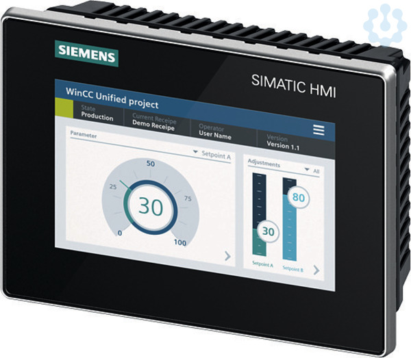 SIMATIC HMI MTP700, Unified Comfort Panel, Touchbedienung, 7 Widescreen-TFT-Display, 16 MIO Farben, PROFINET Schnittstelle, projektierbar ab WinCC Unified Comfort V16, enthält Open Source SW, die unentgeltlich überlassen wird siehe beiliegende Blu-Ray SIMATIC HMI Unified Comfort Panels ermöglichen innovative Bedienkonzepte auf Basis der neuen Visualisierungssoftware SIMATIC WinCC Unified. Alle Geräte, in den Größen von 7 bis 22 Zoll bieten die gleiche Anzahl an Schnittstellen sowie maximalen Bedienkomfort dank moderner Multitouch-Technologie. Die neue Hardware bietet zudem deutlich mehr Leistung für die Umsetzung der Visualisierung. Die Systemlimits wurden mindestens verdoppelt, teilweise sogar verdreifacht. Das ermöglicht die Umsetzung von deutlich größeren Applikationen als bisher auf einem Panel-System. Die Funktionalität der Geräte kann durch die integrierte Edge-Funktionalität nach Bedarf einfach erweitert werden. Um die IT-Sicherheit der Geräte zu gewährleisten, setzt Siemens auf ein proprietäres Betriebssystem und ermöglicht dem Anwender, nicht benötigte Funktionen oder Schnittstellen zu deaktivieren. Jedes Unified Comfort Panel ist in zwei Design-Varianten erhältlich. Standard-Design: Siemens und SIMATIC HMI Branding sowie mit einem silbernen Aluminiumrahmen. Neutrales-Design: Ohne Branding und mit einen schwarzen Aluminiumrahmen.