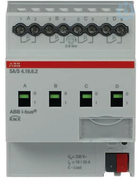 Der Schaltaktor schaltet über 4 potentialfreie Kontakte unabhängige elektrische Lasten über ABB i-bus® KNX.