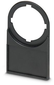 Schildchenträger, einsetzbar für alle Taster und Schalter mit 22 mm Durchmesser, schwarz, unbeschriftet, Montageart: schrauben, nieten, Durchmesser: 23 mm, Textfeldhöhe: 18 mm, Textfeldbreite: 27 mm
