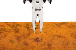 Die patentierte Schraubenzange und mit Design-Preis ausgezeichnete 2-Komponenten-Schraubenzange ist der optimale Problemlöser für festsitzende, verschmutzte oder durch Korrosion beschädigte Schrauben. Die spezielle Kopfform der Zange umschließt den Schraubenkopf sicher und löst so die Schrauben, die mit gängigem Werkzeug nicht mehr zu entfernen sind. Eingelegtes Gelenk, mit induktiv gehärteter Präzisionsschneide (ca. 58 HRC) für harten, mittelharten und weichen Draht. Gewölbe, horizontal- und vertikal-gezahnte Greiffläche Für alle selbstschneidenden oder metrischen Schrauben von M2-M6, Länge 160mm