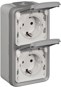 Plexo Classic Steckdose (SL) 2-fach senkrecht IP44 Feuchtraum Aufputz Plexo 55 grau
