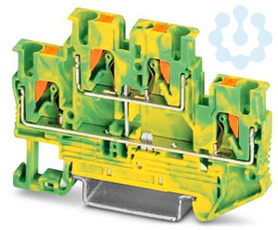 Schutzleiter-Doppelstockklemme, Anzahl der Anschlüsse: 4, Anschlussart: Push-in-Anschluss, 1. und 2. Etage, Bemessungsquerschnitt: 2,5 mm², Querschnitt: 0,14 mm² - 4 mm², Montageart: NS 35/7,5, NS 35/15, Farbe: grün-gelb