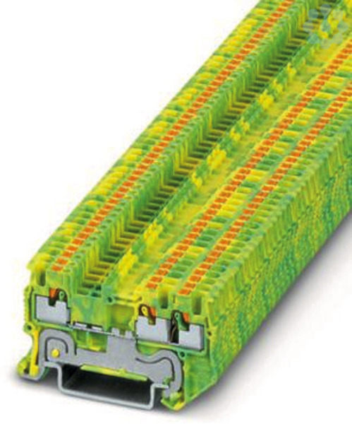 Schutzleiter-Reihenklemme, Anzahl der Anschlüsse: 3, Anschlussart: Push-in-Anschluss, 1. Etage, Querschnitt: 0,14 mm² - 1,5 mm², Montageart: NS 35/7,5, NS 35/15, Farbe: grün-gelb