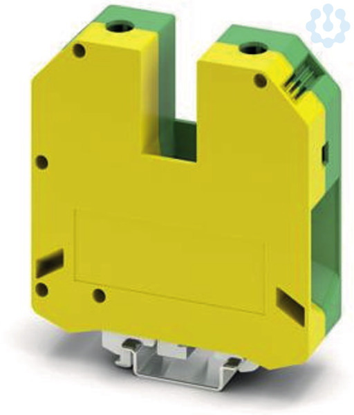 Schutzleiter-Reihenklemme, Schrauben mit Innensechskant, mit Ausbruch zur Brückung, ohne Befestigungsschraube, Anzahl der Anschlüsse: 2, Polzahl: 1, Anschlussart: Schraubanschluss, Bemessungsquerschnitt: 95 mm², Querschnitt: 25 mm² - 95 mm², Montageart: NS 35/7,5, NS 35/15, NS 32, Farbe: grün-gelb