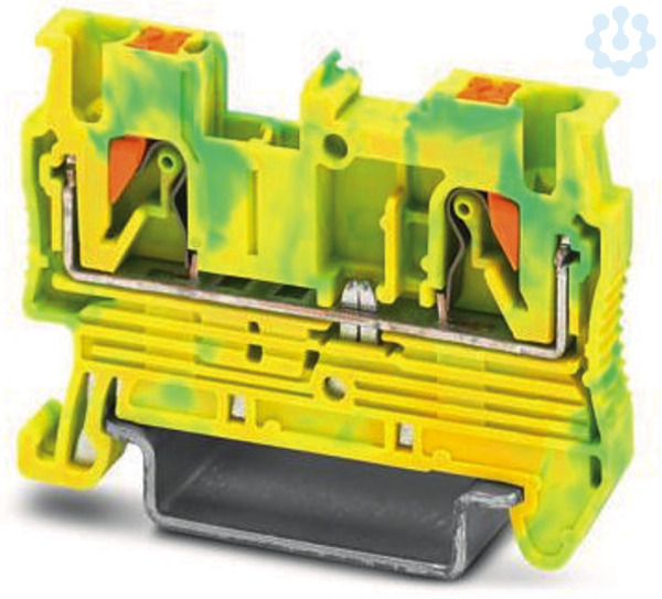 Schutzleiter-Reihenklemme, Anzahl der Anschlüsse: 2, Anschlussart: Push-in-Anschluss, Querschnitt: 0,14 mm² - 4 mm², Montageart: NS 35/7,5, NS 35/15, Farbe: grün-gelb