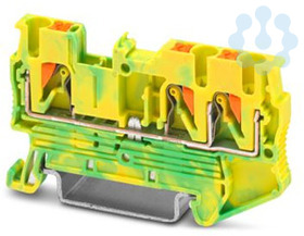 Schutzleiter-Reihenklemme, Anzahl der Anschlüsse: 3, Anschlussart: Push-in-Anschluss, Bemessungsquerschnitt: 2,5 mm², Querschnitt: 0,14 mm² - 4 mm², Montageart: NS 35/7,5, NS 35/15, Farbe: grün-gelb