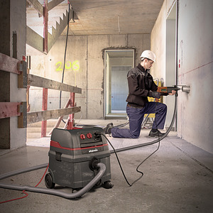 Zum Absaugen von gesundheitsgefährdenden Feinstäuben direkt am Elektrowerkzeug bei Bohr-, Fräs-, Schleif- und Sägearbeiten in der Werkstatt und auf der Baustelle (Staubrückhaltevermögen mind. 99,99 % gem. Staubklasse "M"). Automatische Impuls-Filterabreinigung in den Arbeitspausen. Ausstattung: Schnellläufermotor 1600 W, Vorwahlschalter für Schlauchdurchmesser (35, 27 und 21 mm), 5m Saugschlauch mit Nebenluftring, Gerätesteckdose mit Einschaltautomatik, Filter-Kontrollleuchte, Tragegriff mit Kabelhaken, Schlauchfixierung mittels Klettband, Signalton für Volumenstromunterschreitung, Drehschieber für flexiblen Einsatz von Vliesfilterbeutel und PE-Entleerbeutel, staubfreier Transport durch elastischen TPE-Verschluss am Ansaugstutzen, Sanftanlauf und Nachlauf, Wasserstandserkennung, Antistatisch vorbereitet. Lieferumfang: Zubehörset EW Bau (BG konforme Ausführung), 3x PE-Entleerbeutel.