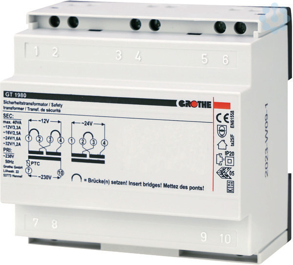 Grothe Klingel- und auch Sicherheitstransformatoren sind prinzipiell mit einen PTC, der bei Kurzschluss und Überlast den Trafo primärseitig abschaltet, geschützt. Alle Transformatoren entsprechen den höchsten Umweltschutzanforderungen, sind geprüft nach EN61558-2-6:2010 und besitzen eine Zertifizierung.