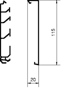 Sockelleistenkanal-Unterteil aus PVC mit mindestens 30% recycelte Materialien, 20x115mm, entspricht DIN EN 50085-1. Es bietet eine direkte Wandmontage mit vorgestanzter Schlüssellochung, 125mm Abstand. Vier Kammern ermöglichen eine effektive Systemtrennung. Werkzeuglose Schnellbefestigung von Geräteträgern und Sicherstellung des Bodenabstands von mindestens 10 mm für isolierte Leitungen.