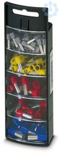 Sortibox, bestückt mit Aderendhülsen nach DIN 46228-4, 50 Stck. AI 4-10 GY, je 20 Stck. AI 6-12 YE, AI 10-12 RD, 10 Stck. AI 16-12 BU