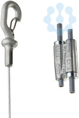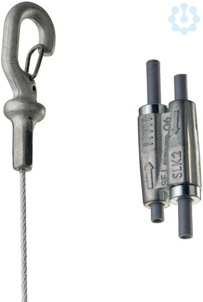 Vielseitige, höhenverstellbare Abhängung zur schnellen Installation an verschiedenen Trägern, Balken und CADDY-Befestigungen. Hakenendstück auf der einen Seite, schlüssellose Verriegelung auf der anderen Seite, 2 m Länge, 2 mm Kabel.