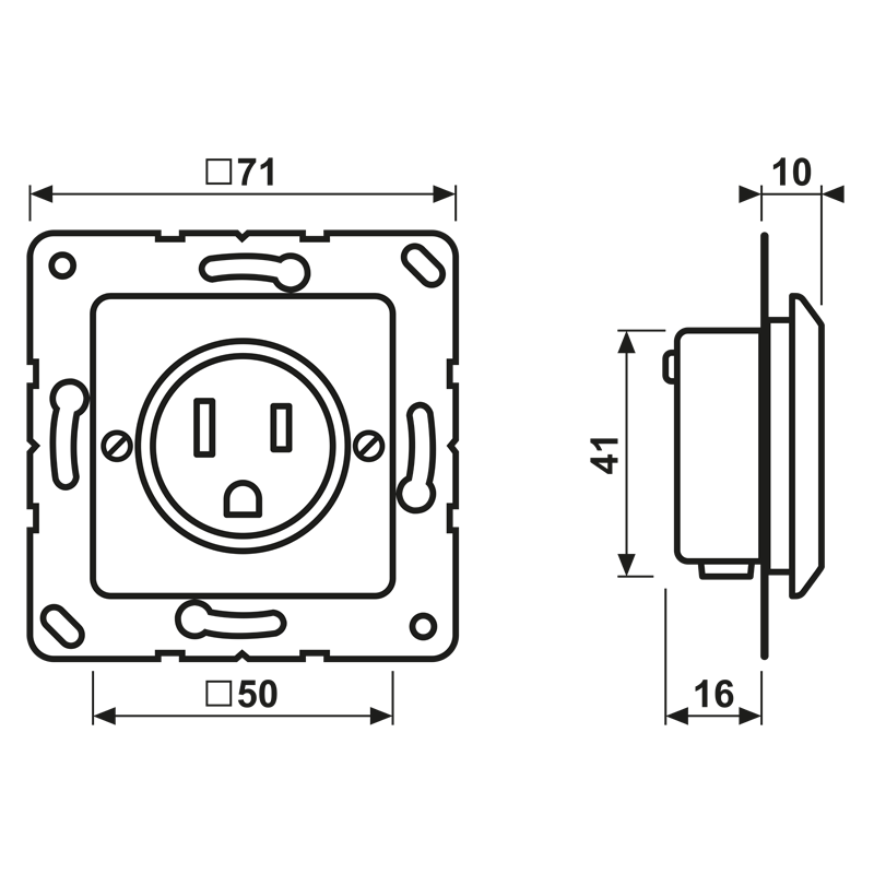 Steckdose, US-Norm NEMA, 15 A 125 V ~, Schraubklemmen, Thermoplast, 50 x 50 mm, weiß