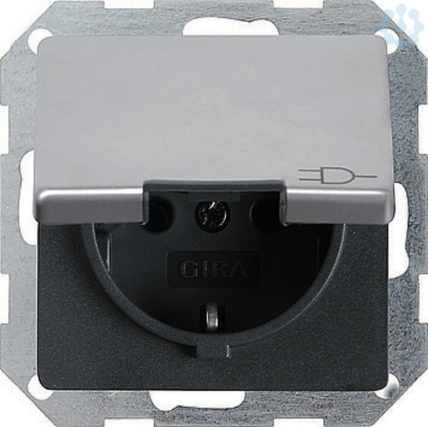 Steckdose mit Erdungsstift 16 A 250 V~, Klappdeckel, integriertem erhöhten Berührungsschutz (Shutter) und Symbol Aluminium Merkmale: Mit Schraubklemmen. Hinweise : Nach NF C 61-314 (2003) zugelassen. Erhöhter Berührungsschutz gemäß DIN VDE 0620-1.