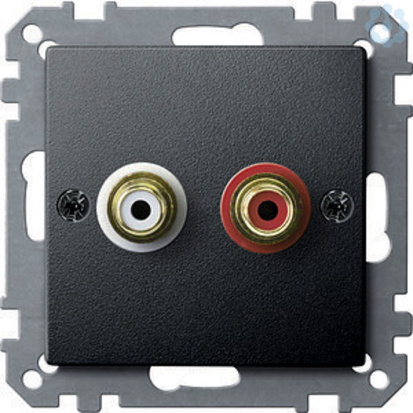 Mit zwei Chinch-Steckbuchsen. Farben Rot und Weiß. Vergoldete Kontakte. Kontakte mit Lötanschlüssen. Material Thermoplast edelmatt. Farbe anthrazit.