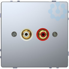 Mit zwei Chinch-Steckbuchsen. Farben Rot und Weiß. Vergoldete Kontakte. Kontakte mit Lötanschlüssen. Material Thermoplast lackiert. Farbe Edelstahl.