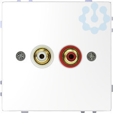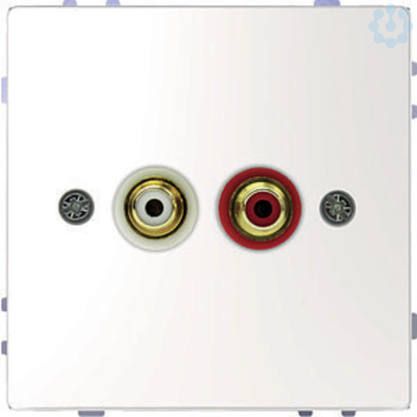 Mit zwei Chinch-Steckbuchsen. Farben Rot und Weiß. Vergoldete Kontakte. Kontakte mit Lötanschlüssen. Material Thermoplast brillant. Farbe Lotosweiß.