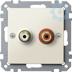 Mit zwei Chinch-Steckbuchsen. Farben Rot und Weiß. Vergoldete Kontakte. Kontakte mit Lötanschlüssen. Material Thermoplast edelmatt. Farbe weiß.
