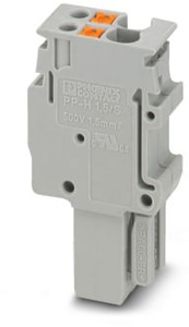 Stecker, Nennspannung: 500 V, Nennstrom: 17,5 A, Anzahl der Anschlüsse: 2, Polzahl: 2, Anschlussart: Push-in-Anschluss, Bemessungsquerschnitt: 1,5 mm², 1. Etage, Querschnitt: 0,14 mm² - 1,5 mm², Montageart: Steckmontage, Farbe: grau