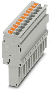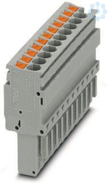 Stecker, Nennspannung: 500 V, Nennstrom: 24 A, Anzahl der Anschlüsse: 11, Polzahl: 11, Anschlussart: Push-in-Anschluss, Bemessungsquerschnitt: 2,5 mm², 1. Etage, Querschnitt: 0,14 mm² - 4 mm², Farbe: grau