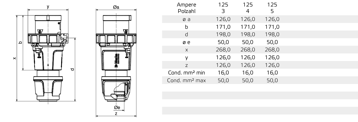Stecker TE, Stecker TE 125A, 125A 5p, 5p 400V, 400V 6h, 6h, IP67, IP67