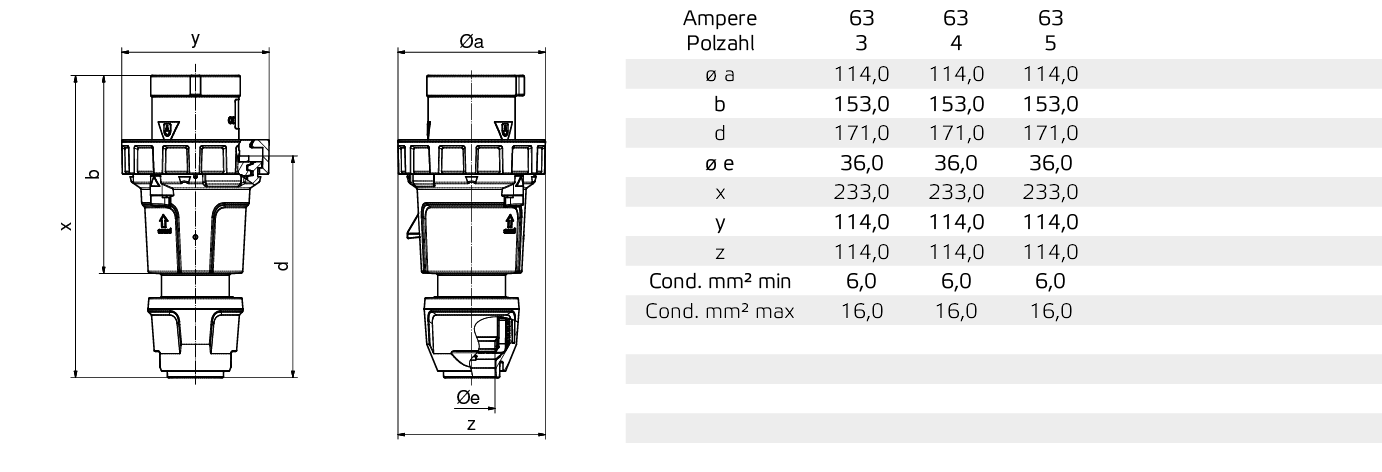 63A 5p (3P+N+PE) 400V (200/346 - 240/415V~) 6h IP67