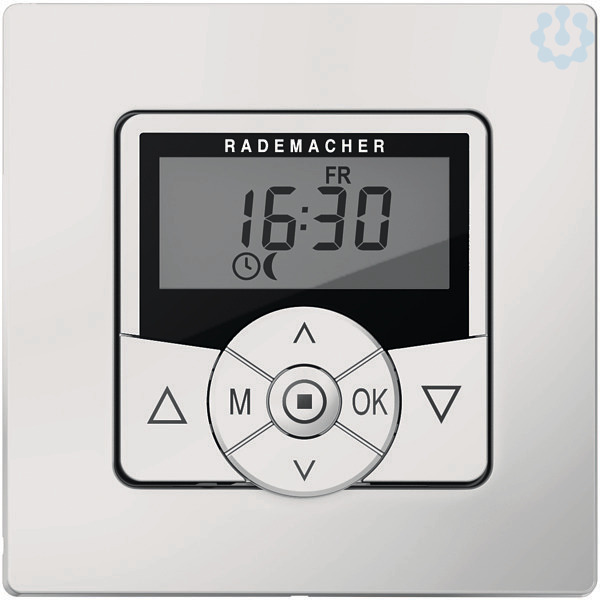 Die Motorsteuerung Troll Standard ist eine Zeitschaltuhr zur Steuerung von Rohrmotoren. Sie ist der Nachfolger des Standard-Modells aus der 2620- und, 2640-Reihe von RADEMACHER. Die neue Steuerung erscheint in einem modernen Design mit einem großen Display mit Kontrasteinstellung und wird in der Farbe Ultraweiß inkl. Rahmen geliefert. Die Steuerung verfügt über einen Installationsassistenten und ist dank Tages-/Wochenprogramm individuell programmierbar. Die Sommer-/Winterzeitumstellung erfolgt automatisch und gegen ungewolltes Bedienen kann eine Tastensperre eingestellt werden. Auch die einfache Übernahme der aktuellen Uhrzeit als Schaltzeit ist möglich. Mit der integrierten Zufallsfunktion wird durch die zufällige Verzögerung der eingestellten Schaltzeiten Anwesenheit simuliert. Die Motorsteuerung hat eine integrierte Blockiererkennung für mechanischen Rohrmotoren. Diese schützt dank Abschaltung den angefrorenen Rollladen vor Schäden. Die Zeitschaltuhr verfügt über zwei externe Eingänge mit denen eine Gruppen- oder Zentralsteuerung realisiert werden kann. Die Versorgungsspannung beträgt 230 V, 50 Hz und sie ist der Schutzklasse II zugeordnet. Im Stand-by verbraucht die Steuerung Troll Standard ca. 0,6 W. Sie verfügt über eine dauerhafte Datenspeicherung (8h) bei Stromausfall und kann bei 0 bis +40°C betrieben werden. Die Schaltleistung beträgt 8 A ohmsche Last, 4 A induktive Last. Das Bedienteil hat die Maße 50x50x12 mm (LxBxH) und die Einbautiefe beträgt 32 mm.