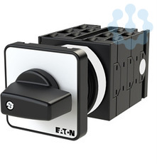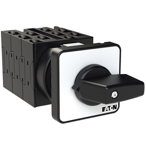 Stufenschalter, Sortiment: Steuerschalter, Normen und Bestimmungen: IEC/EN 60947, VDE 0660, IEC/EN 60204, CSA, UL, Lasttrennschalter nach IEC/EN 60947-3, Typkenner: T0, mit schwarzem Knebel und Frontschild, Kontakte: 9, Stufenanzahl: 3 Stufen, 45°, Schutzart: Front IP65, Bauform: Einbau, Schaltwinkel: 45 °, Schaltverhalten: rastend, mit 0-Stellung, 5 Baueinheit(en), Bemessungsdauerstrom: Iu= 20 A, Frontschild: 0-3