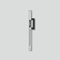 Einsteck-Türöffner mit Flachschließblech, Hammerschlag grau lackiert, für DIN rechts oder DIN links verwendbar.
