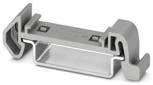 Tragschienenadapter, für NS 35 mit Endhalterfunktion zur Aufnahme von 2,5 mm² und 4 mm² FIX-Blöcken in horizontaler Richtung; Farbe: grau