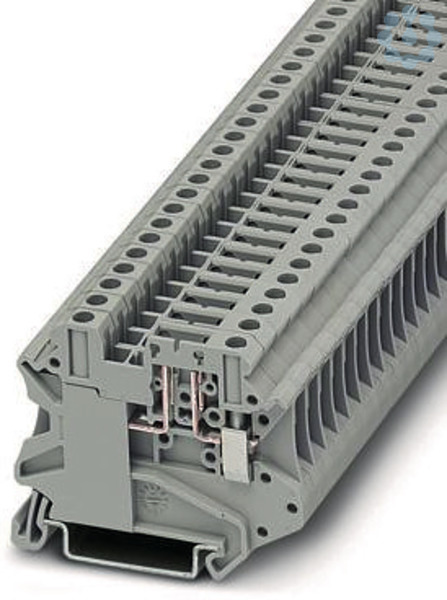 Trennklemme, Strom und Spannung werden durch den eingesetzten Stecker bestimmt., mit Prüfbuchsenschrauben zur Aufnahme von Prüfsteckern, Nennspannung: 500 V, Thermischer Dauerstrom Ith: 20 A, Anschlussart: Schraubanschluss, Bemessungsquerschnitt: 4 mm², Querschnitt: 0,14 mm² - 6 mm², Montage: NS 35/7,5, NS 35/15, Farbe: grau