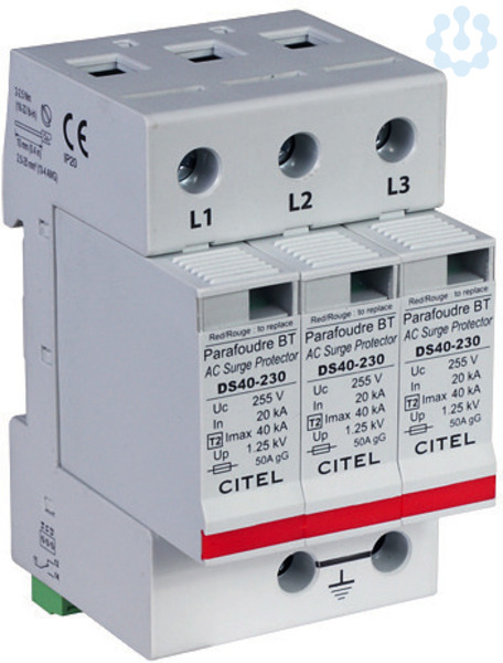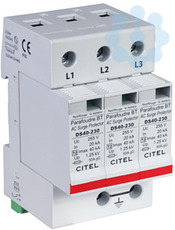 3-poliger Ableiter Typ 2 (C) für 230 V TNC Netze (3+0). Netzfolgestromfreier Überspannungsableiter zum Einsatz in der Unterverteilung. Max. Ableitstoßstrom - Imax je Pol: 40 kA. Einfacher, werkzeugloser Schutzmodul Wechsel durch 2-teiligem Aufbau. Funktions- / Defektanzeige durch Optisches Sichtfenster und Fernsignalisierung Montage auf Hutprofilschiene 35 mm nach EN 50022. Geprüft nach IEC 61643-11