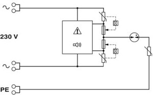 Typ 3-Ableiter zur universellen Montage in Installationsdosen, Brüstungskanälen, Unterflurinstallationen oder direkt im Endgerät. Schaltung thermisch überwacht, akustische Defektmeldung. Installation in Stich- oder Durchgangsverdrahtung. Ausführung: 230 V AC